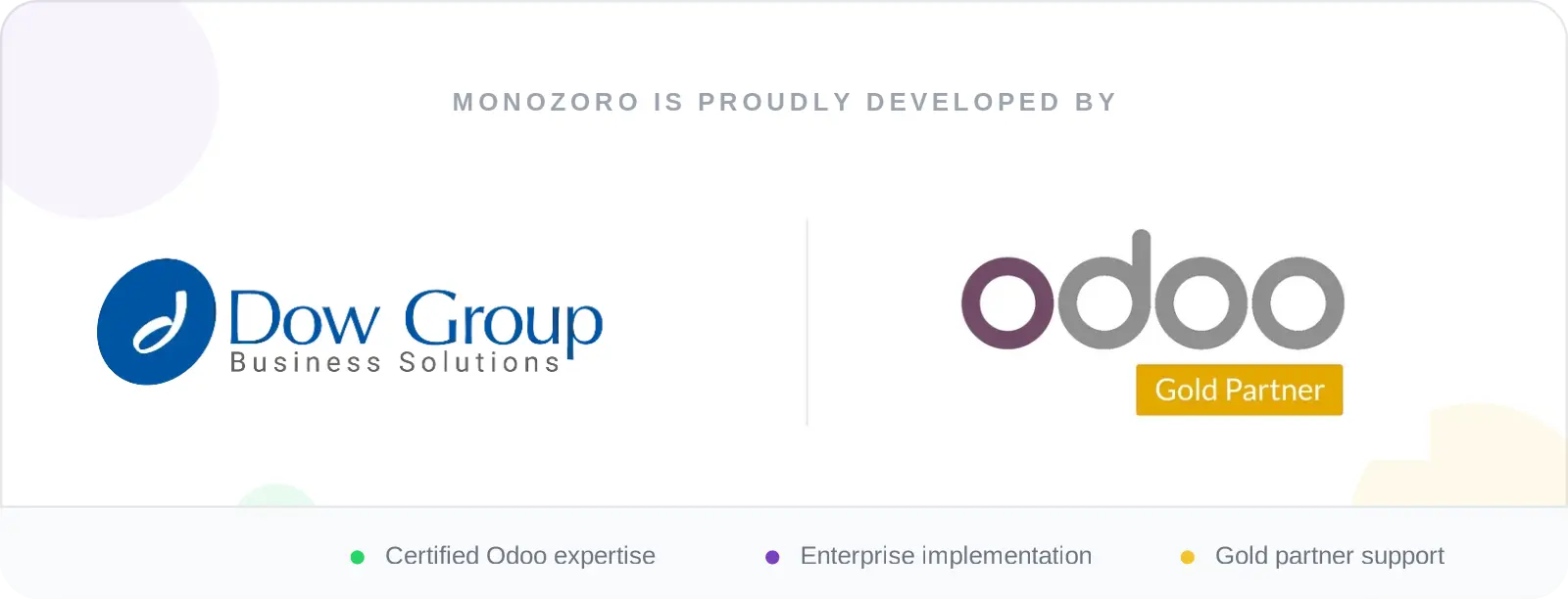 Monozoro isn't a product you'll find on an app store. It's a white-glove module built, maintained, and supported exclusively for Dow Group's Odoo client portfolio — because it performs best when the team behind it already knows your stack.